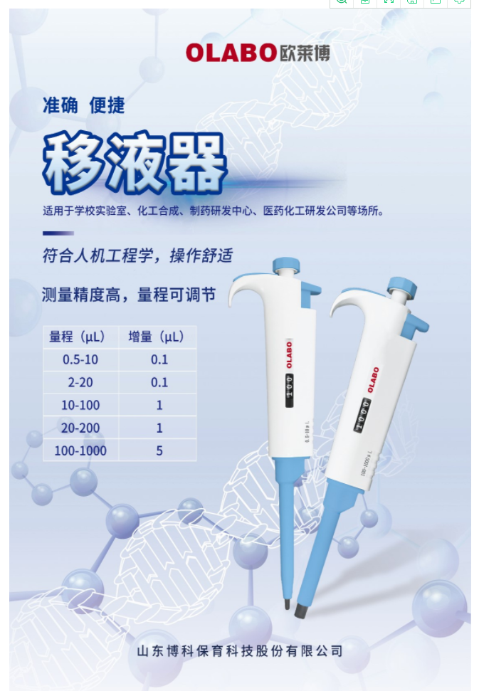國產OLABO,B系列單道可調式移液器2-20μl量程:2-20μl,精確分液,數字視窗,符合人體工學,握姿舒適