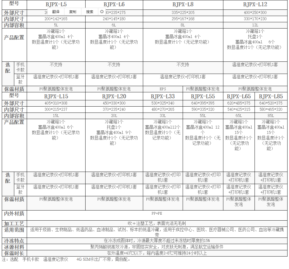 在外溫度+43℃以下,箱內溫度2-8℃可維持24小時以上
